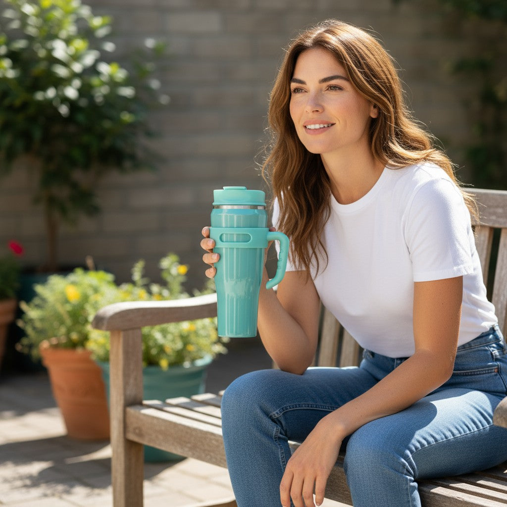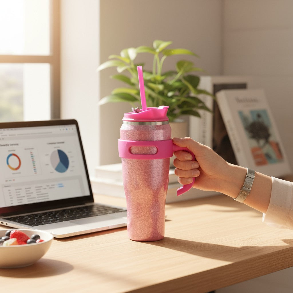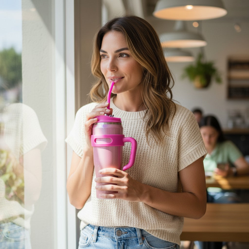 Com capacidade generosa, alça ergonômica confortável e canudo reutilizável, este copo foi pensado para quem busca beleza, sustentabilidade e conforto em cada detalhe.