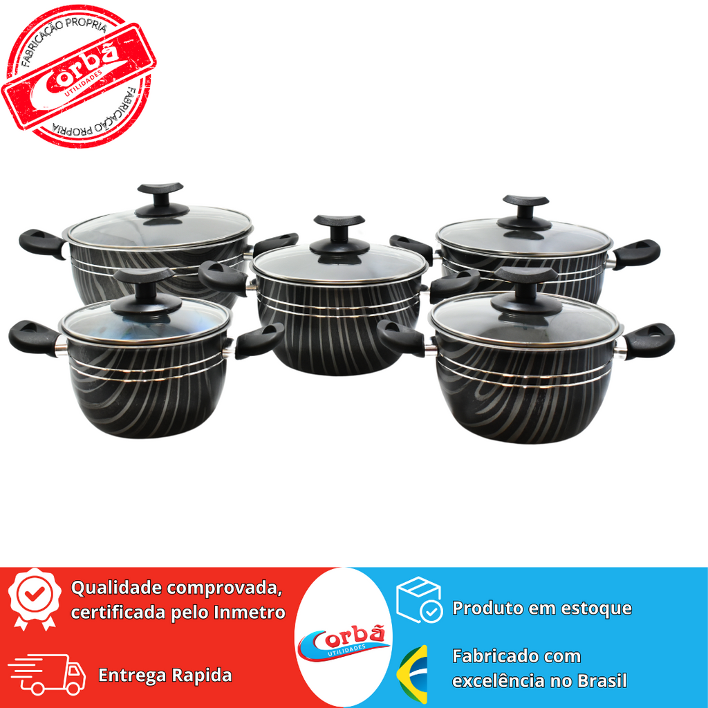 ✨ Jogo de Panelas Qatar 5 Peças com Tampa de Vidro