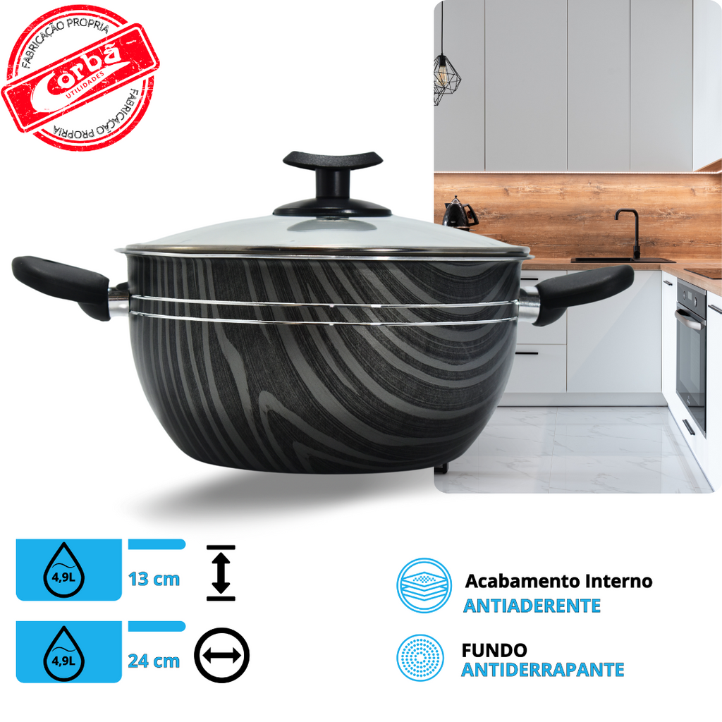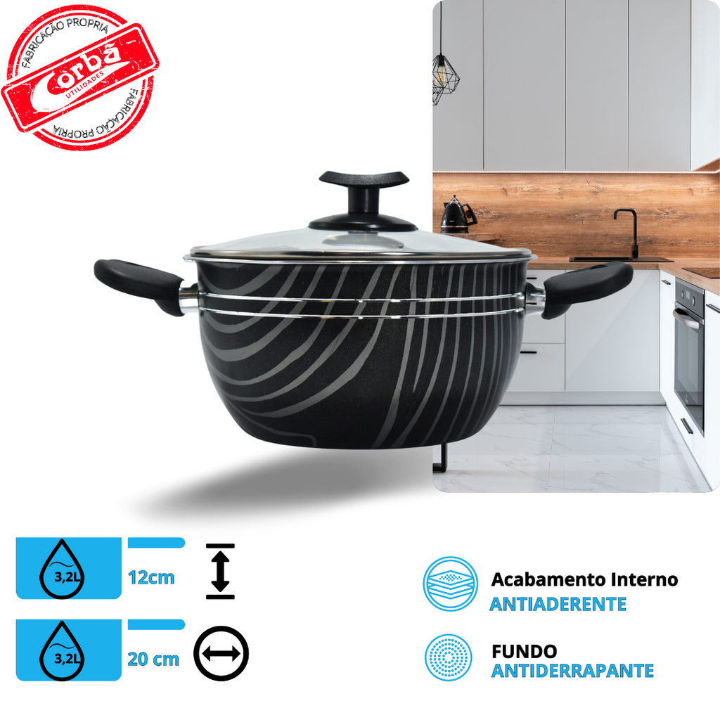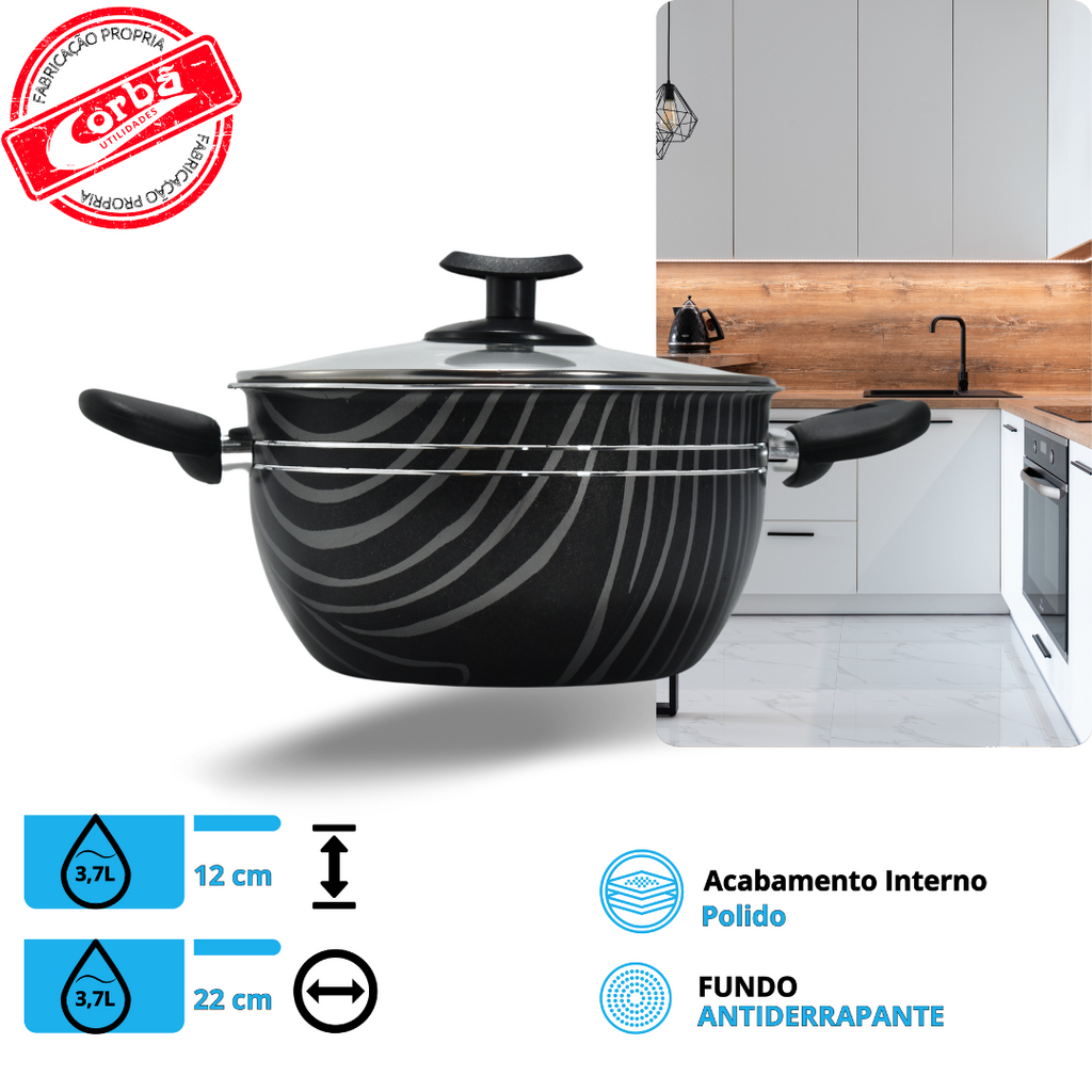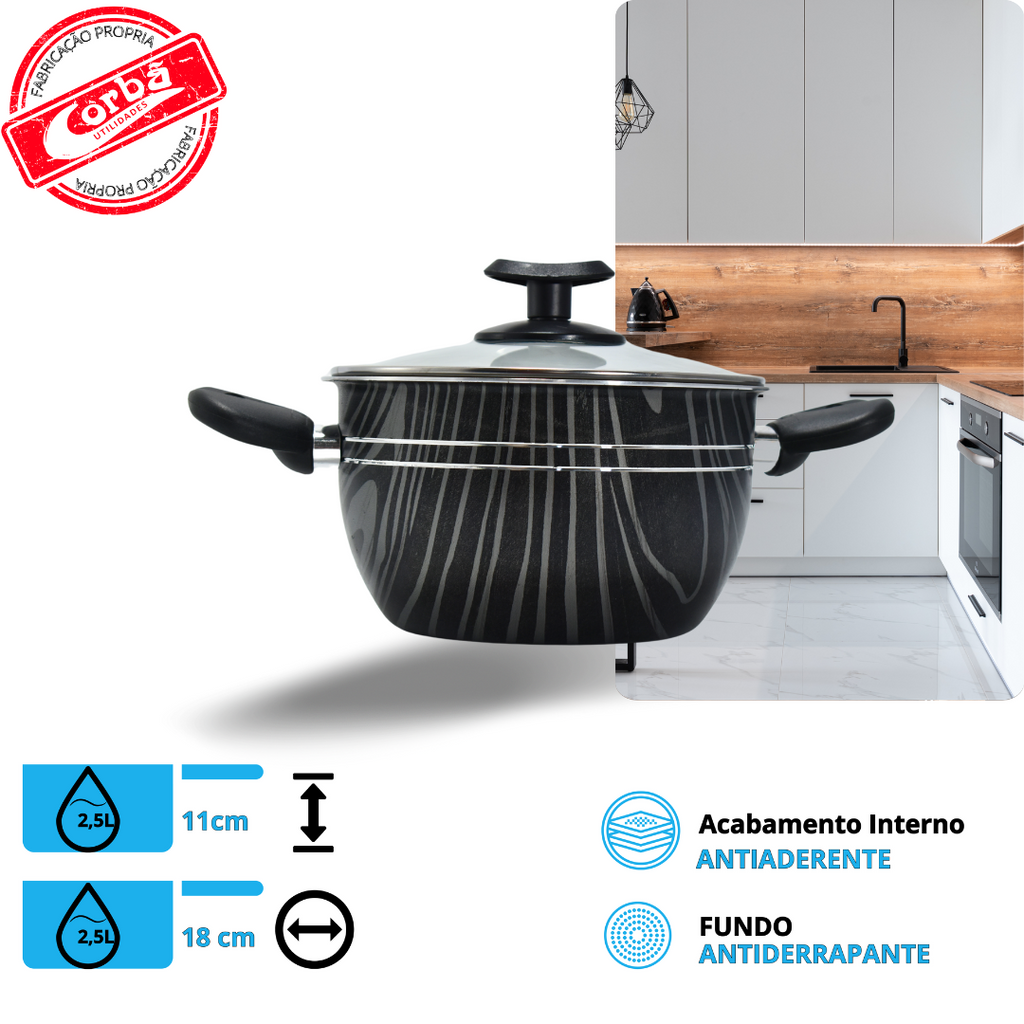 Seu interior em alumínio de alta qualidade proporciona aquecimento uniforme, garantindo pratos no ponto certo, enquanto as tampas de vidro temperado permitem acompanhar o cozimento sem perder o calor, preservando o sabor e os nutrientes dos alimentos.
