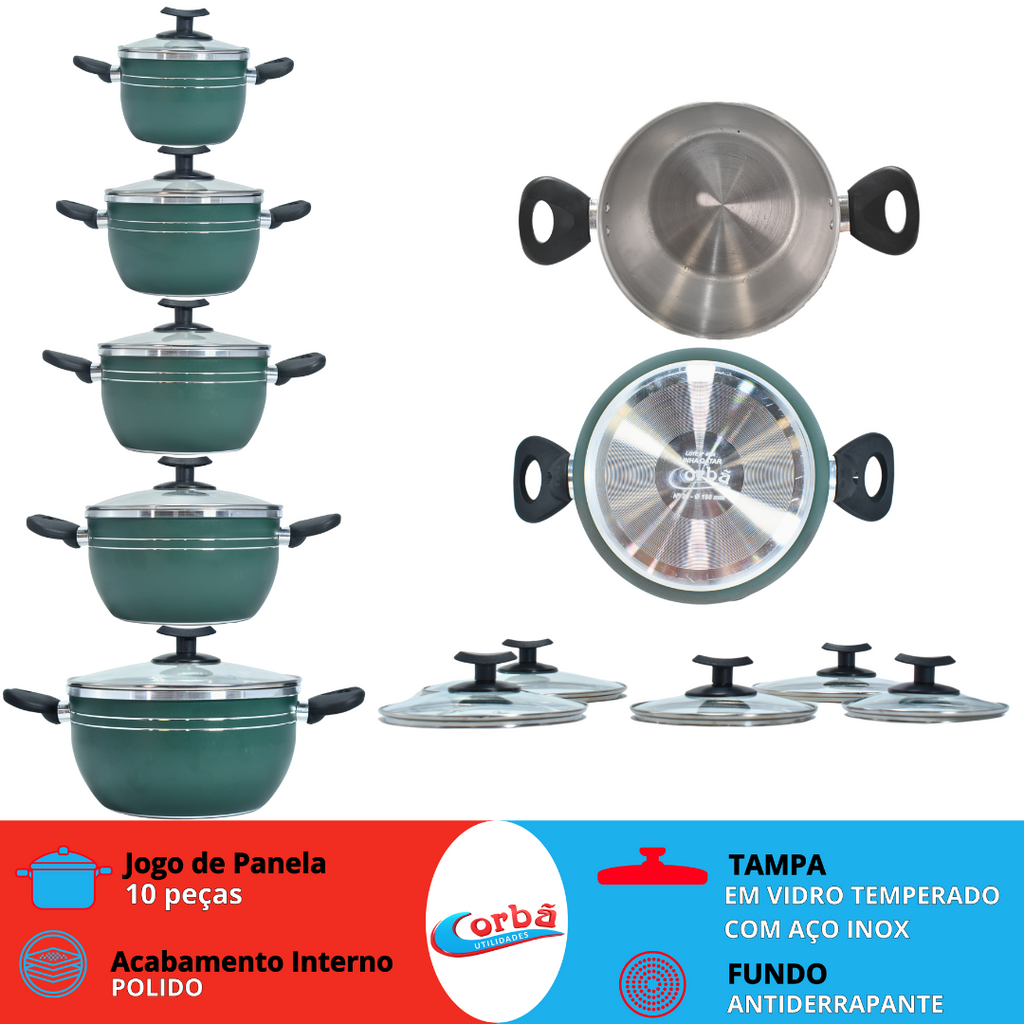 Transforme sua cozinha com este conjunto incrível! Com revestimento externo antiaderente e interior em alumínio de alta qualidade, as Panelas Corbã Qatar garantem preparo rápido, uniforme e sem grudar. Menos óleo, mais saúde e limpeza em segundos!
