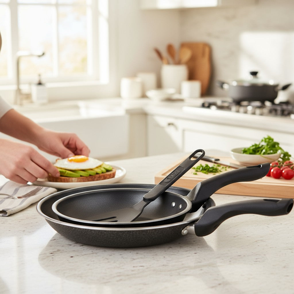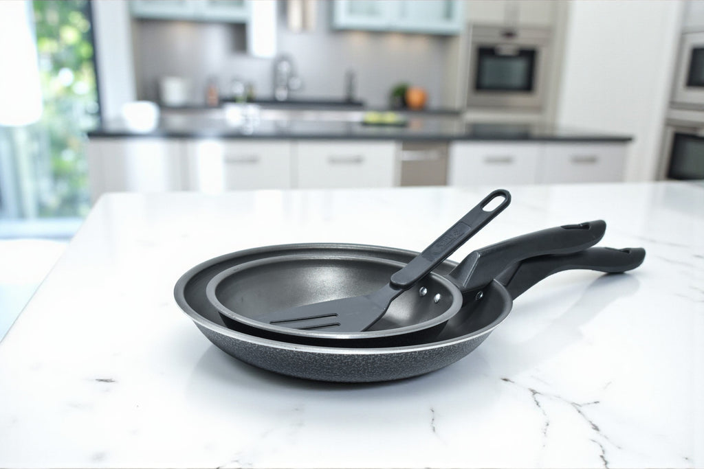 O Kit Corbã vem com 2 frigideiras antiaderentes de alta qualidade e 1 espátula , oferecendo tudo o que você precisa para preparar suas receitas favoritas com mais facilidade e sabor.