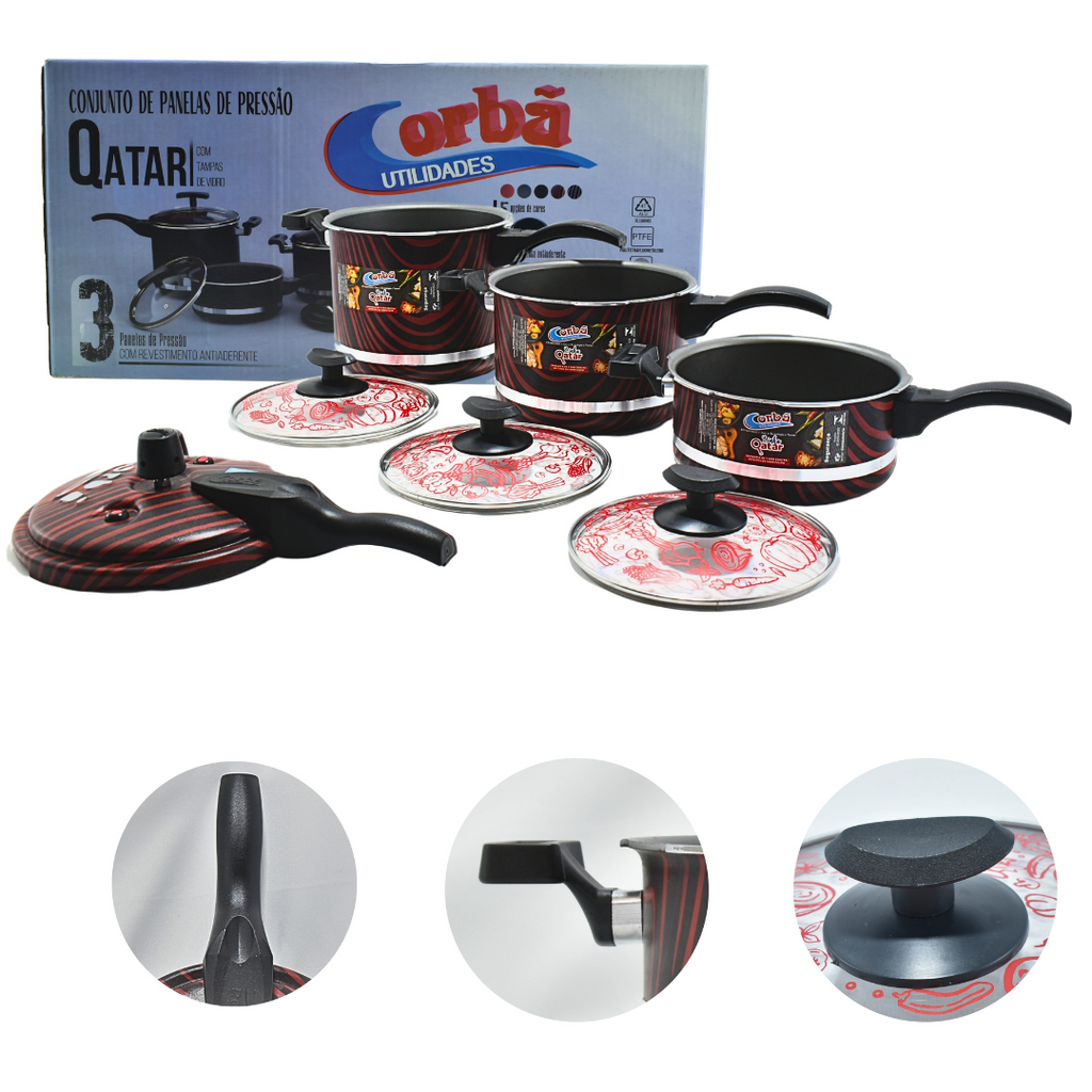 O Kit Panela de Pressão Qatar Corbã é a escolha ideal para quem busca praticidade, eficiência e design sofisticado na cozinha. Composto por 7 peças, este kit garante versatilidade total para o preparo das suas receitas do dia a dia.