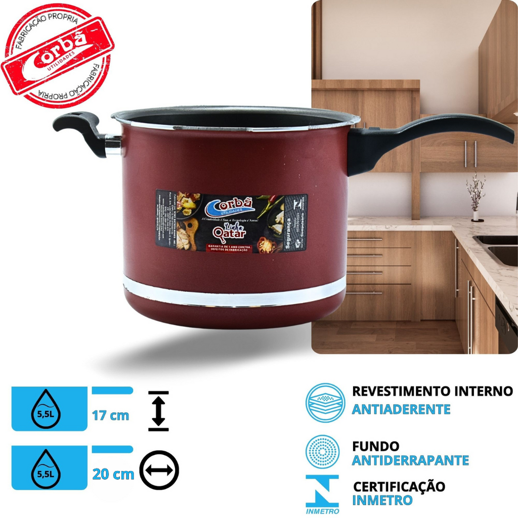 Com o Kit Panela de Pressão Qatar Corbã Antiaderente, você tem segurança, versatilidade e praticidade em um único produto. Ideal para quem deseja cozinhar com qualidade, ganhar tempo no dia a dia e limpar sem esforço.