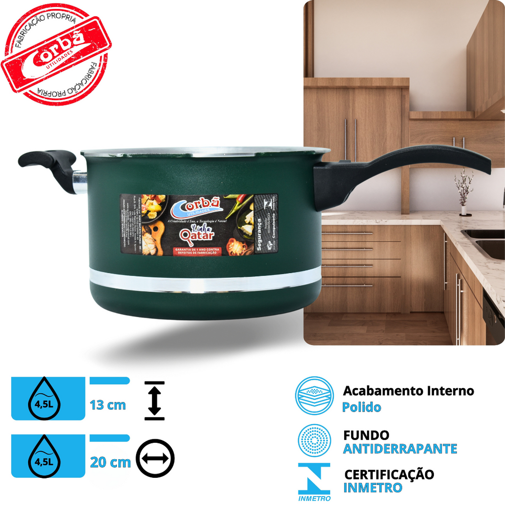 KIT PANELA DE PRESSÃO QATAR CORBÃ VERDE MT COM TAMPA DE PRESSÃO MULTIFUNCIONAL