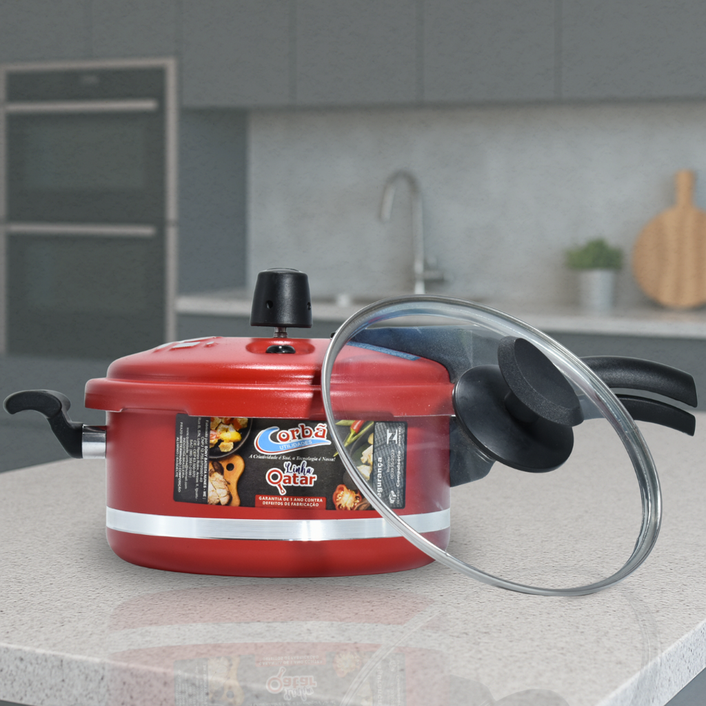 Panela de Pressão Qatar Vermelho MT 3 Litros com Tampa de Vidro – Corbã